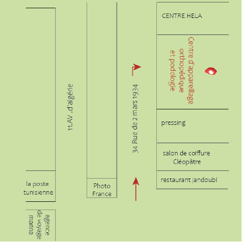 notre cENTRE D'appareillage à bizerte Adresse :Bizerte, 34 Rue de 2 mars 1934Tel:98 119 351 notre cENTRE D'appareillage à Tunis Manar2 Adresse: 12 Av Slimene Ben Slimene diar ElhayetTel:98 119 359 notre cENTRE D'appareillage à Sousse Adresse:sousse ,3 Av.Tahersfar , galerie Med hédi ghédiraTel: 98 119 352